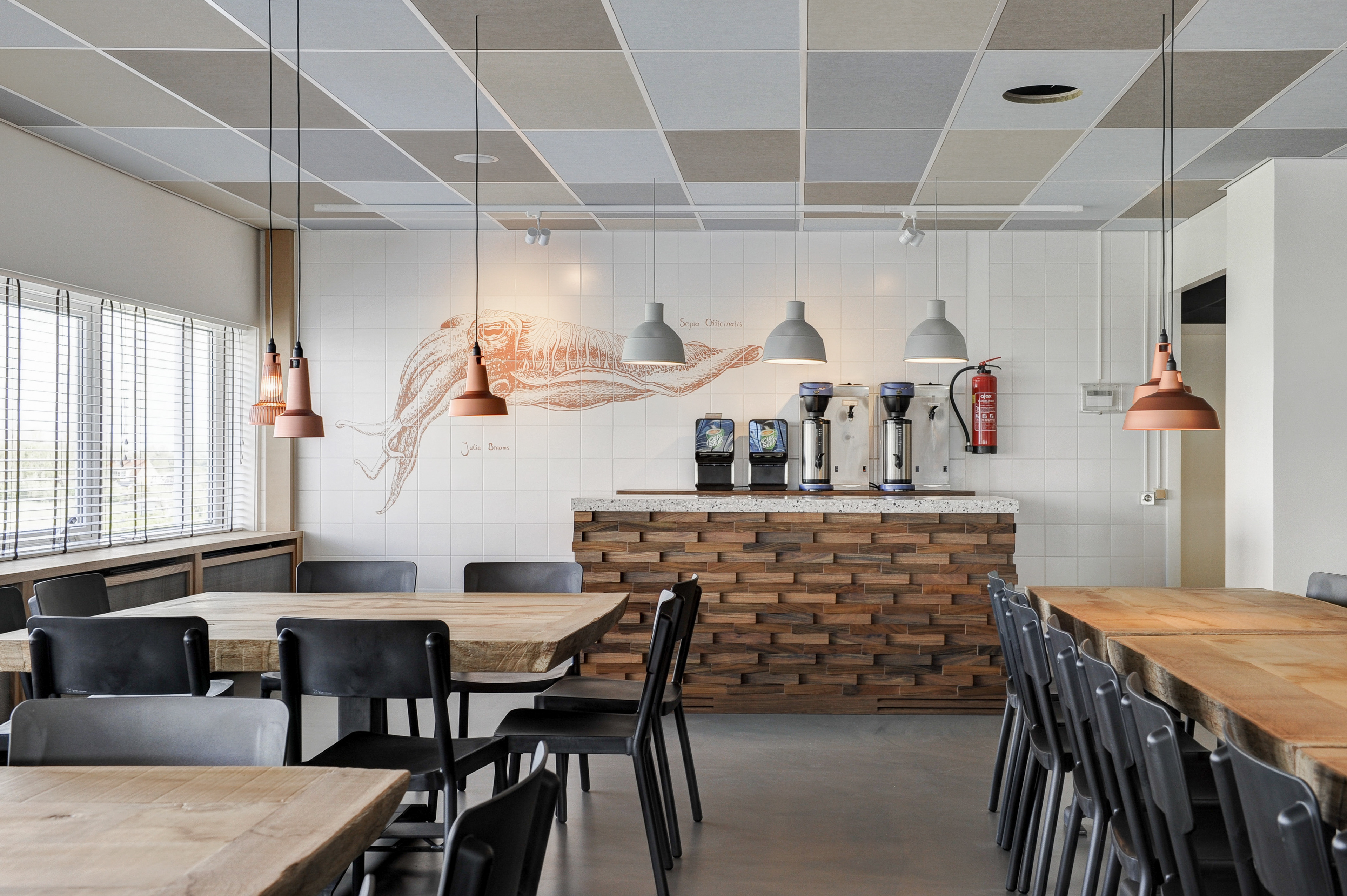 Piet Jan van den Kommer designed and produced the interior of the canteen for this company. Also the conference room. I photographed it.